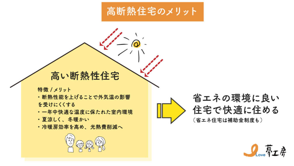 高断熱によって「夏涼しく、冬暖かい」快適性が実現するだけでなく、冷暖房効率を高めることができます。光熱費の節約ができれば、脱炭素といった環境保護にもつながります。