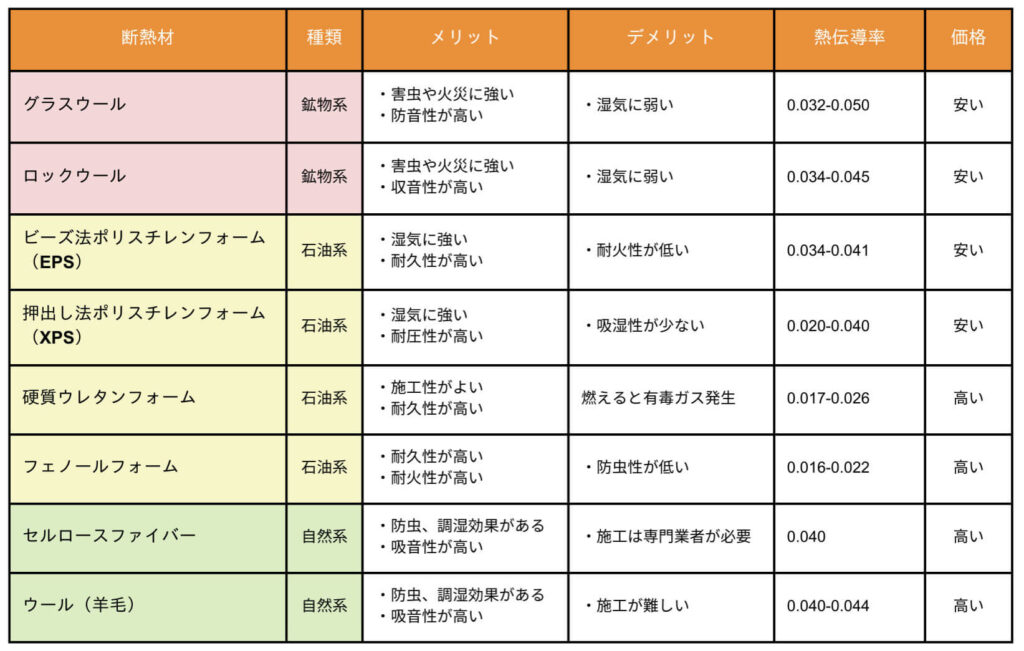 今回は、数ある断熱材の特徴や性能をわかりやすく解説・比較します。断熱材選びに迷う方はぜひ参考にしてください。