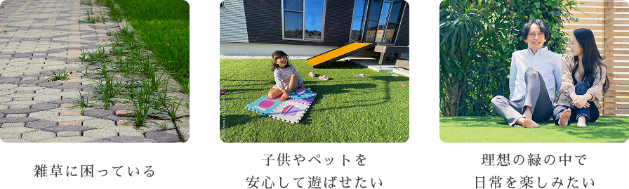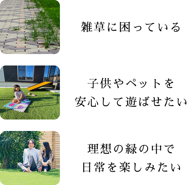3ご家庭の庭、ベランダにも簡単に導入できます。 戸建てだけに限らずマンションにも対応しており、導入も最短1日で行うことができます。「庭づくりは思い出づくり」。子どもたちも庭づくりに参加でき、思い出の動画に仕上げることも可能です。家族みんなの手で庭が美しくなる体験を楽しみ、COOOL Turf®(クールターフ)を通して家族の絆を深める癒しの場を提供いたします。