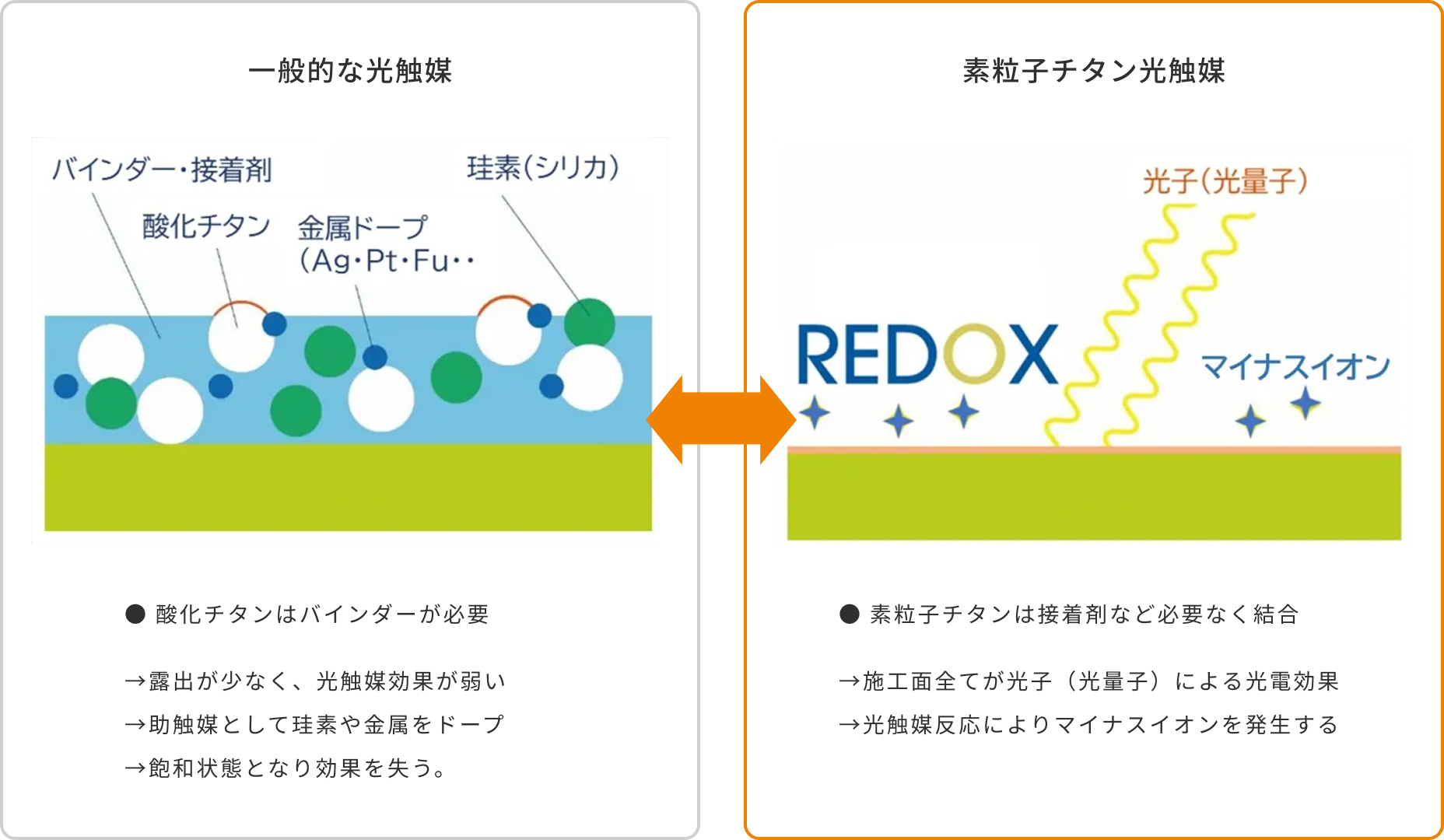 - 光電効果により帯電防止作用が起こり、汚れの付着を防ぐ。
