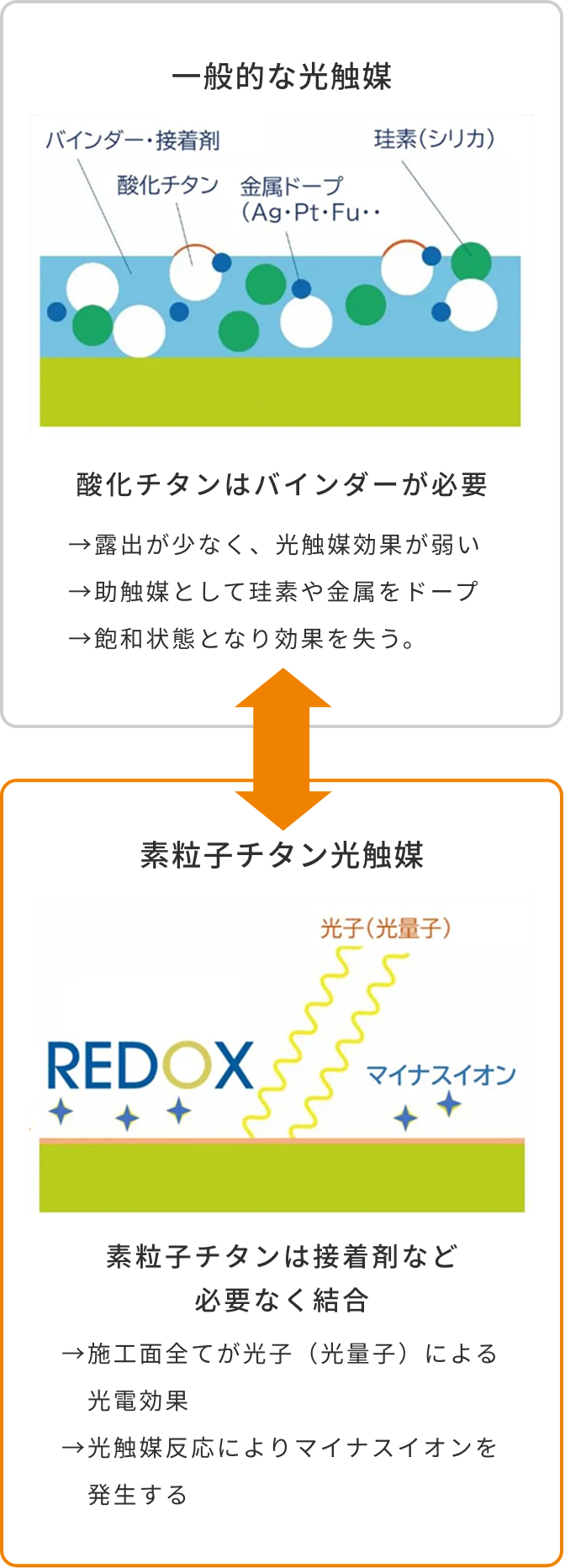 →他社の光触媒について(チタン以外の金属を添加・シリカ(ケイ酸)を添加・無色透明の光触媒)