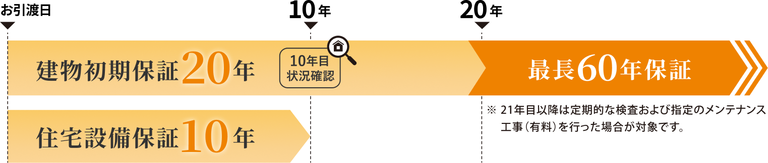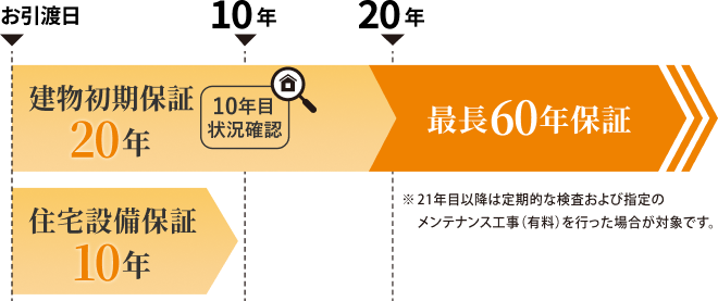 当社は、高品質住宅だからこそ実現できる長期保証で、住まいと暮らしをサポートいたします。