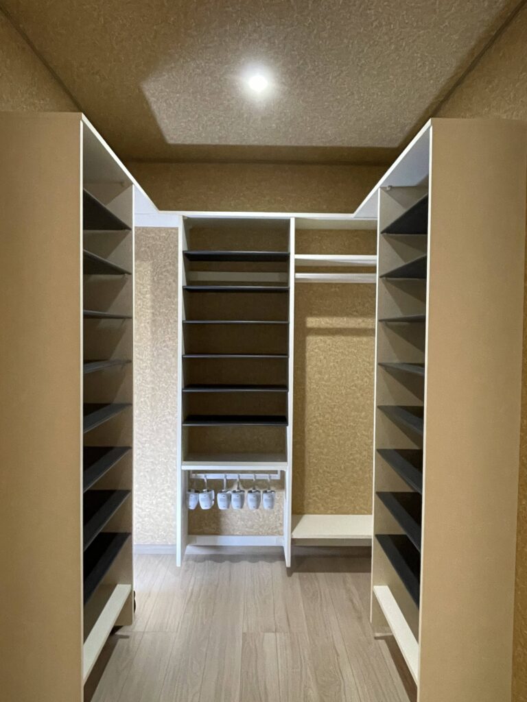 靴だけでなく、ベビーカー、アウトドア用品、コート類まで全て収納でき、玄関周りが常にすっきり片付きます。