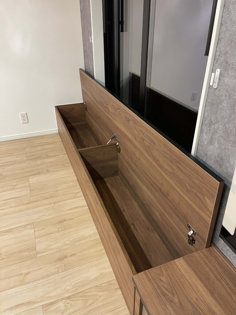 家族団らんの場となるだけでなく、座面下を大容量の収納スペースとして活用しました。