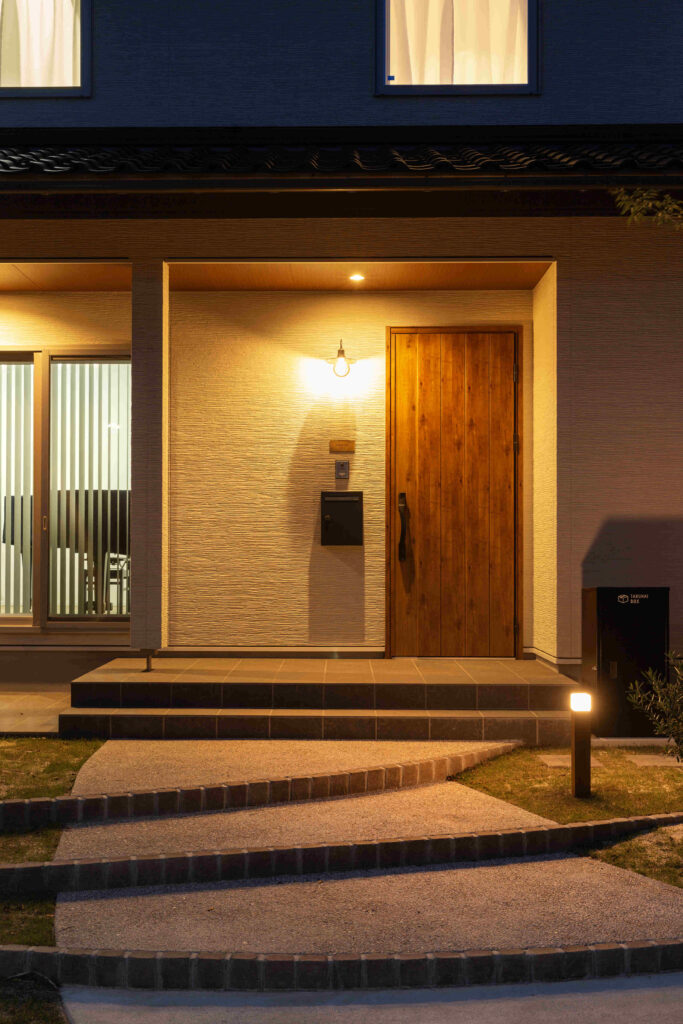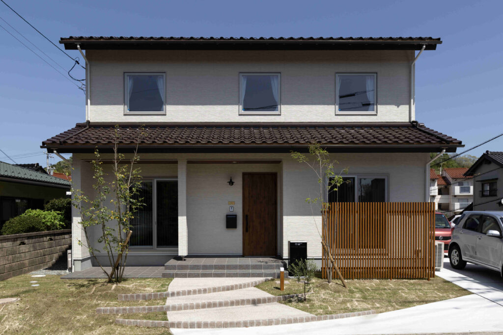 ホワイトと自然な木目の組み合わせが、ぬくもりを感じさせる魅力的な外観です。