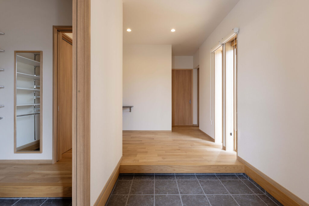 家族玄関があれば、お客様を迎えた時に家族の靴やコートなどを隠すことができ、急な来客時も安心です。