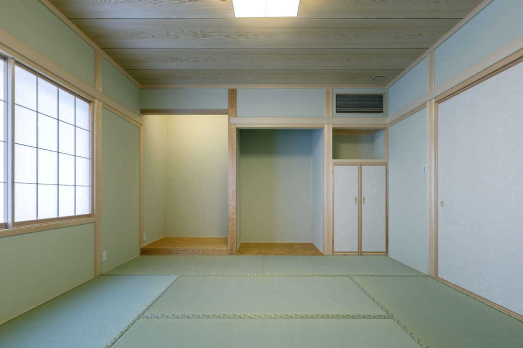 天然素材がもたらす清々しい空気と、モダンな機能性を融合させた、上質な和の空間です。